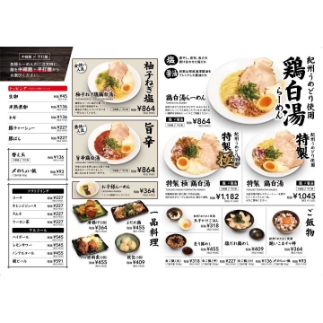 じっくり炊き上げた鶏白湯スープの濃厚な旨みが味わえる、上富田町のラーメン店「鶏ノ極」。 鶏のコクとまろやかさを最大限に引き出した一杯は、最後まで飲み干したくなる味わいです。 「鶏白湯らーめん」「特製 鶏白湯」「特製 極 鶏白湯」の3種は、塩・醤油から味を選択可能。 特に醤油は、鶏の旨みと香ばしさのバランスが良くおすすめです。 旨辛鶏白湯、柚子ねぎ塩鶏白湯は塩のみで提供しています。 また、ご飯ものも充実。 新たに加わった「賄い こまチャ丼」は、紀州うめたまごの濃厚な味わいとチャーシューが絡む、満足感の高い一品。 鶏めし、豚めし、玉子かけご飯も、より美味しくリニューアルされています。 ランチにもディナーにも利用しやすく、駐車場完備。 鶏の旨みを極めたこだわりのラーメンを、ぜひ一度ご賞味ください。