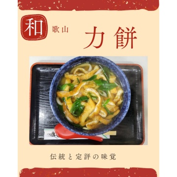和歌山市のぶらくり丁商店街に佇む老舗食堂「力餅(ちからもち)」。昭和9年創業の歴史ある店内は、どこか懐かしい昭和の雰囲気が漂い、地元の人々に長年愛されてきました。 看板メニューのうどんは、透き通った出汁と関西風の優しい味わいが特徴。特に「きつねうどん」は、甘すぎない揚げと出汁の絶妙なハーモニーで、何度でも食べたくなる味です。また、親子丼や他人丼などの丼物も充実しており、うどんとセットで楽しむこともできます。 甘味好きには見逃せないのが力餅。小ぶりで優しい味わいは、昔ながらの素朴な風味を堪能でき、午後には売り切れることもある人気ぶりです。 アクセスも便利で、和歌山市駅やJR紀和駅から徒歩圏内。ランチや買い物の合間に、懐かしさと温かみを感じられるひとときを楽しめます。どのメニューもリーズナブルで、1,000円以下で満足できるのも魅力のひとつです。 地元に根ざした老舗の味を、ぜひ「力餅」で体験してみてください。懐かしい味と心温まる雰囲気が、あなたを迎えてくれます。